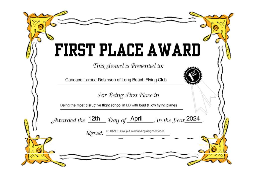So many late night and loud planes it was an easy choice, unfortunately. Seems like Candace Larned (Robinson) and Long Beach Flying Club just don’t want to “Fly Friendly”. Pretty sure they’ve gotten “the memo” as they are the oldest flight school operating out of LGB.