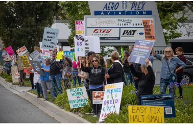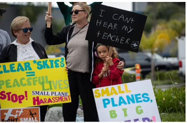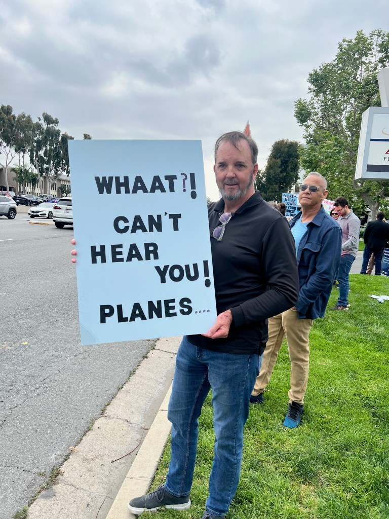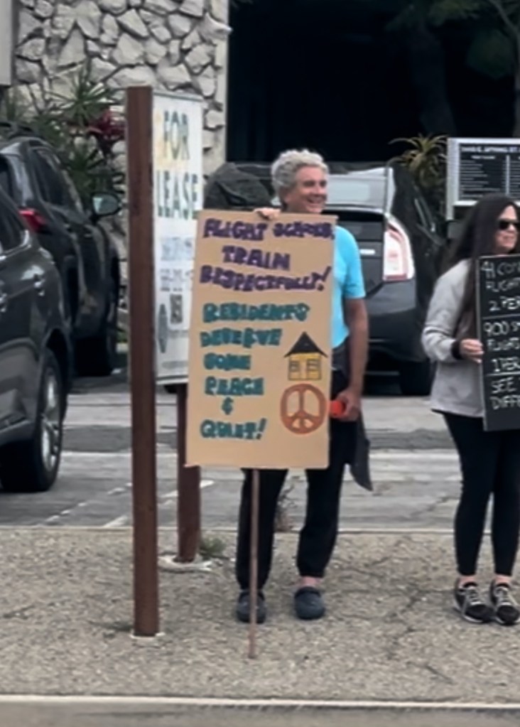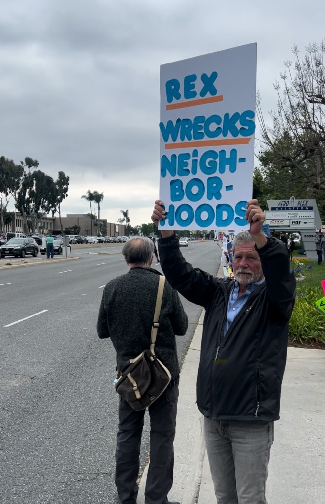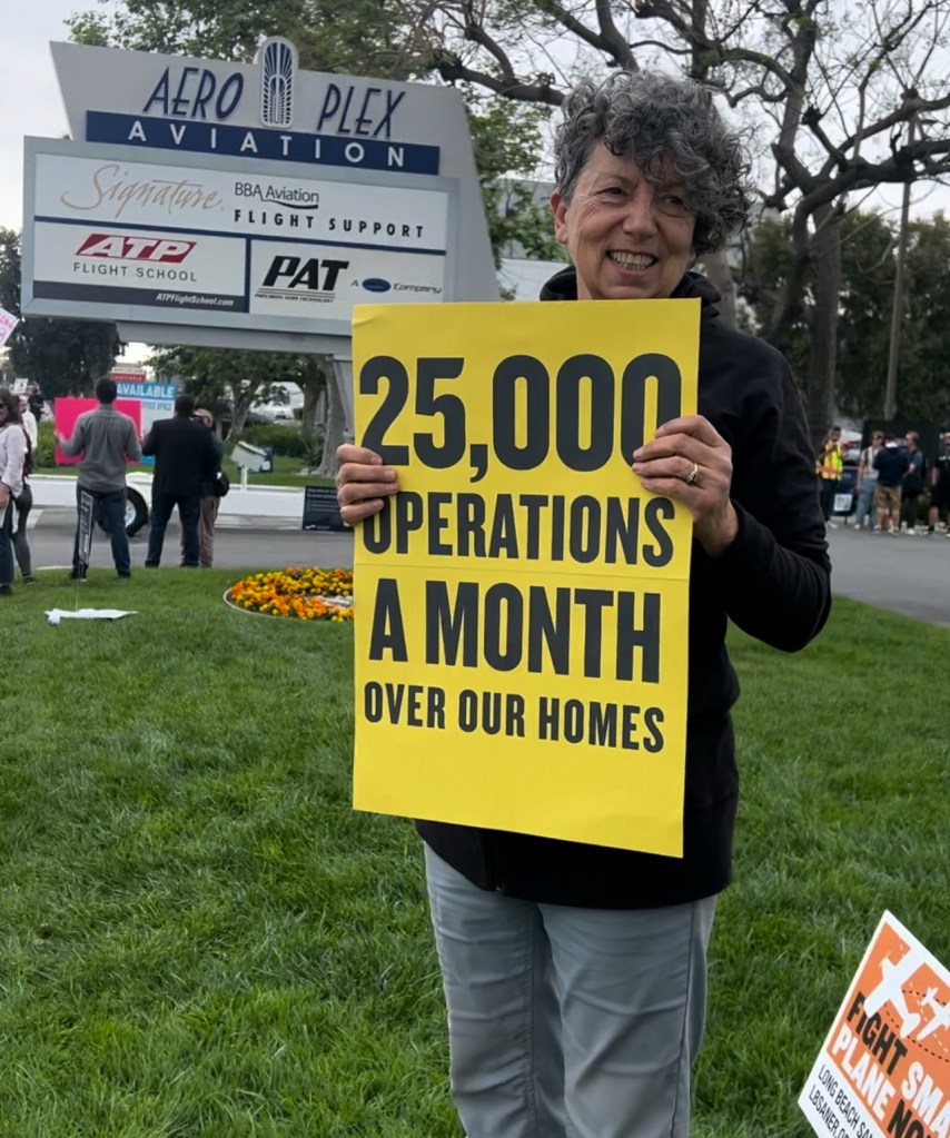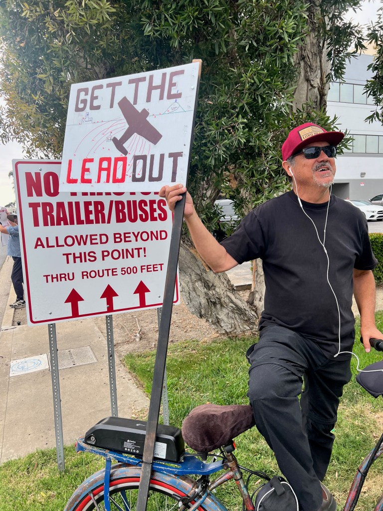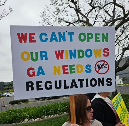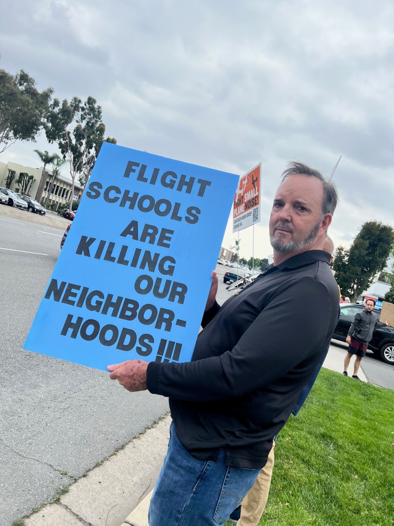 Last Thursday SANER staged a protest on Spring Street in front of the Aeroplex complex to bring attention to the increased high volume of flight school aviation operations that create noise and lead emissions over neighborhoods surrounding the airport.