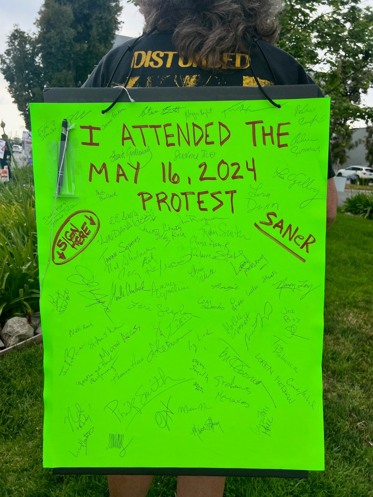 Over 100 neighbors came together in this weekday afternoon protest with homemade signs. For many, this was their first time meeting in person but all were drawn to make their voices and concerns heard and seen. This was a great turnout considering many Saners work, have young children, and other obligations on a weekday. Signs were pointed, funny, and creative. Several news media were there to cover the protest and interview participants.